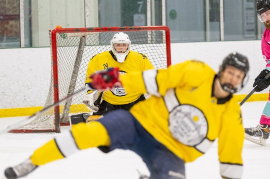 In the second period, we had the intensity ratcheting up and the teams played a little run and gun for a bit with no rewards. With just under 10 minutes to play, Rohan Dempsey picked up a rebound in front of the Lions goal and shot it back into Pate. The puck fell to his left and as he sprawled out to make a save in desperation, Scott Stewart got the puck and went to release a shot. Keith Webb was there and batted the puck off the stick of Stewart with the stick and puck in the midst of a follow through, both stick and puck were in the air, but never made it to the goal.